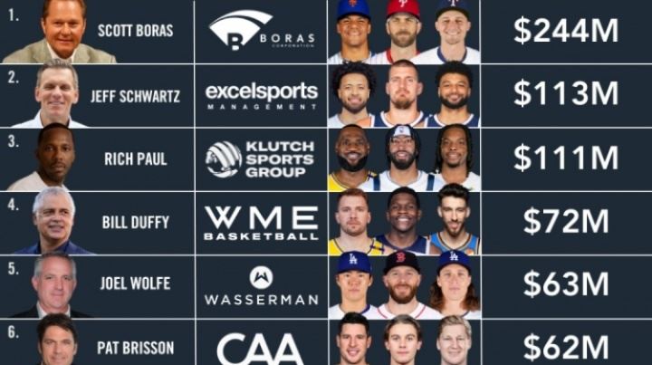 25年体育经纪人佣金榜:富保罗仅第三!MLB传奇经纪人2.44亿