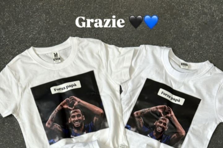 恰尔汗奥卢的第三个孩子于2023年出生,照片上的三件小码T恤对应着恰尔汗奥卢的三个孩子,同时T恤上用意大利语写着“谢谢你爸爸”,配图是恰尔汗奥卢身穿国米球衣时手比爱心。
