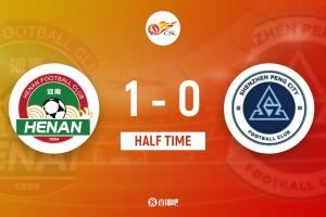 上半场比赛结束,河南1-0深圳新鹏城。